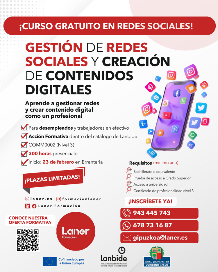 voy a impartir un curso de Gestión de Redes Sociales y Creación de Contenidos Digitales y creo que puede encajar mucho con personas que estén en momento de cambio o crecimiento profesional.